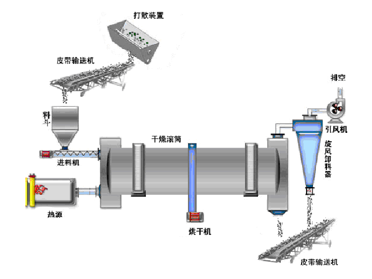 單筒烘干機(jī)主要用于選礦、建材、冶金、化工等部門烘干濕度或粒度的物料。烘干機(jī)對物料的適應(yīng)性強(qiáng),可以烘干各種物料,且設(shè)備操作簡單可靠,故得到普遍采用。 可分為工業(yè)與民用兩種,工業(yè)烘干機(jī)也叫干燥設(shè)備或干燥機(jī),該機(jī)主要由回轉(zhuǎn)體、揚(yáng)料板、傳動(dòng)裝置、支撐裝置及密封圈等部件組成,采用了揚(yáng)料板裝置,具有 導(dǎo)向、均流、揚(yáng)料等多項(xiàng)功能,能使物料在烘干機(jī)徑向截面均布,料幕成為薄、均、全的狀態(tài),接觸熱氣流,達(dá)到充分利用熱能的目的。